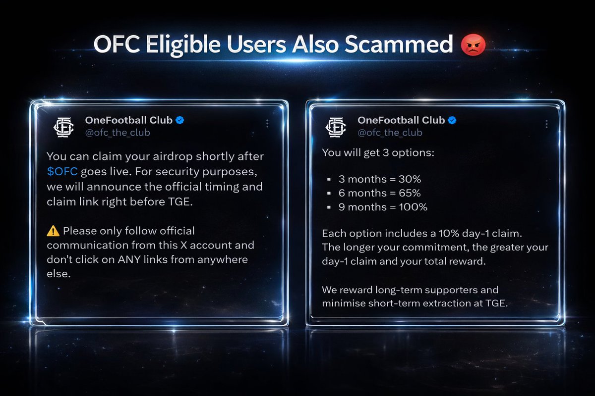 🚨 2 YEARS of waiting… and THIS is what $OFC did? 😡 Users trusted them. Stayed active. Waited patiently for the airdrop… And now? 👉 90% users NOT eligible 👉 Confusing claim system (3, 6, 9 months lock??) 👉 Rewards cut unless you wait LONGER This doesn’t feel like a https://t.co/r23nqJHkWe