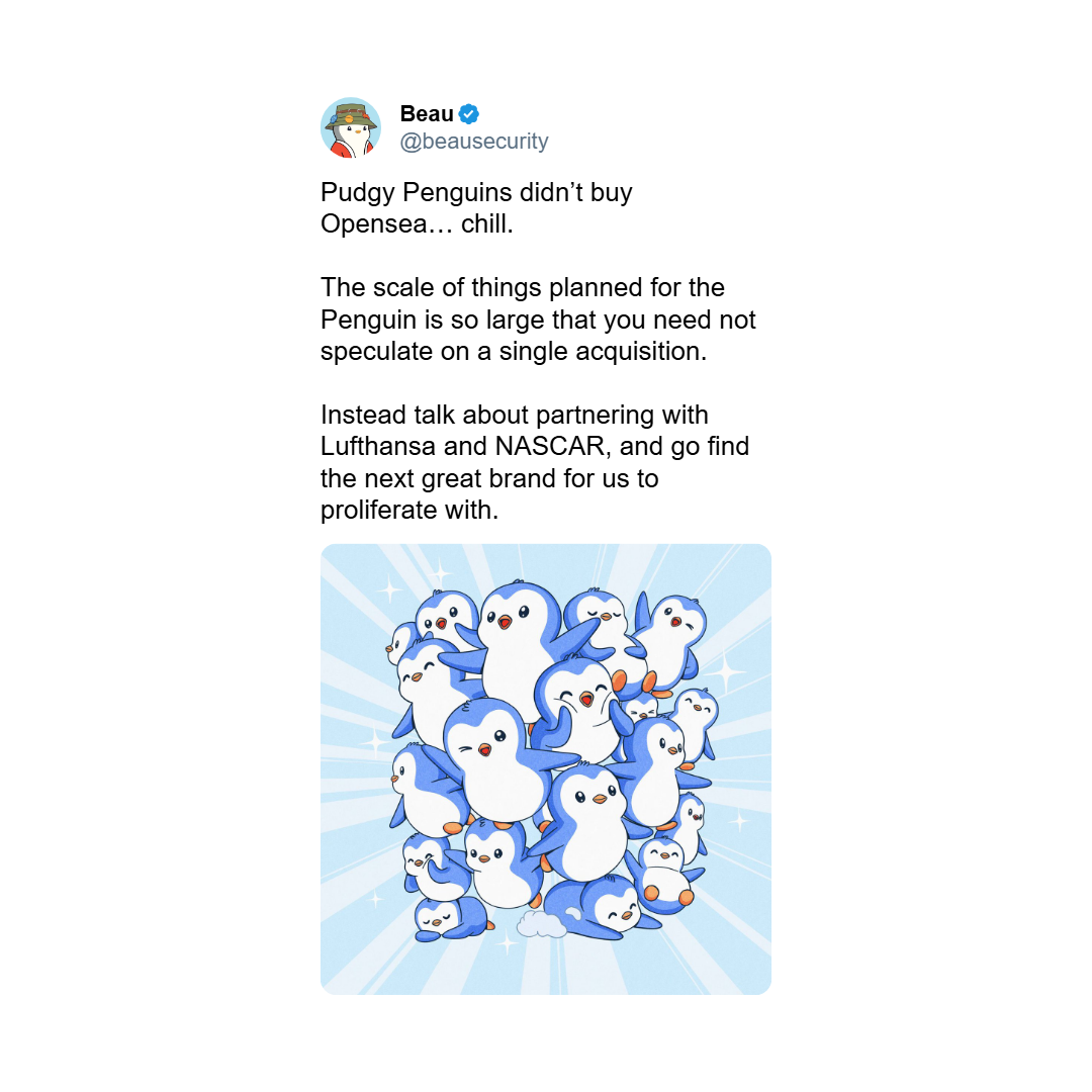 “Pudgy Penguins didn’t buy OpenSea… chill.”