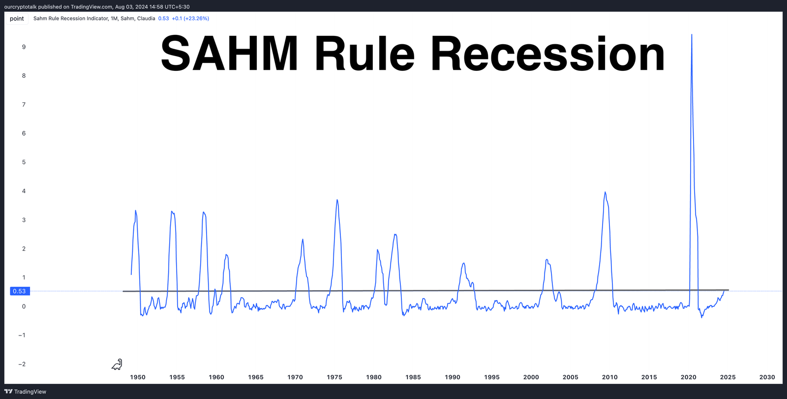 In summary, the SAHM Indicator’s rise above 0.5 is a strong warning of a potential recession. This development has already triggered market selloffs and could continue to impact both traditional and crypto markets in the coming months. Investors should stay informed and consider adjusting their strategies in light of this significant economic signal.