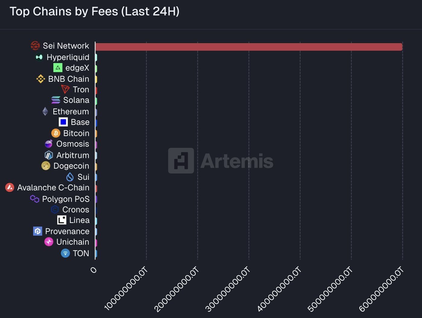 The Artemis visualization makes the story crystal clear. Sei’s bar towers above every competitor, followed by Hyperliquid in second place at nearly 60% of Sei’s total. EdgeX, BNB Chain, and Tron follow in the $150,000 to $200,000 range. Solana and Ethereum, often the usual fee front-runners, came in mid-pack at roughly respectively. Lower-tier chains like Arbitrum, , and Polygon each remained below the $50,000 threshold.