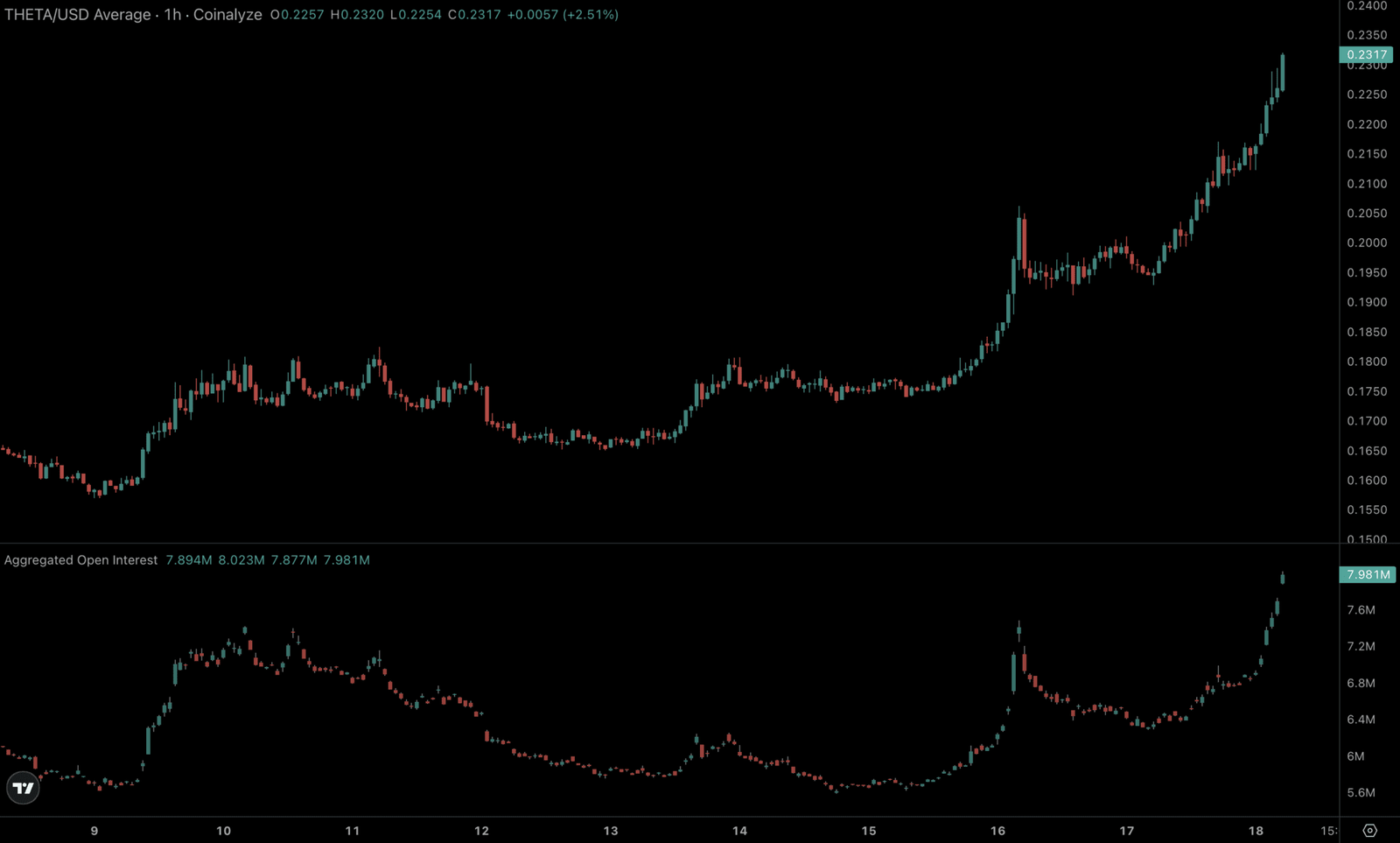 Secondary factors are also contributing to the move. According to CoinGecko, THETA recorded a sharp rise in trading activity alongside the price increase, indicating strong market participation. Broader sector rotation into AI and decentralized physical infrastructure networks is also driving capital toward tokens with real-world compute utility. Additionally, price action confirms a breakout above recent consolidation levels, reinforcing momentum in the short term, based on TradingView and Coinalyze data.
