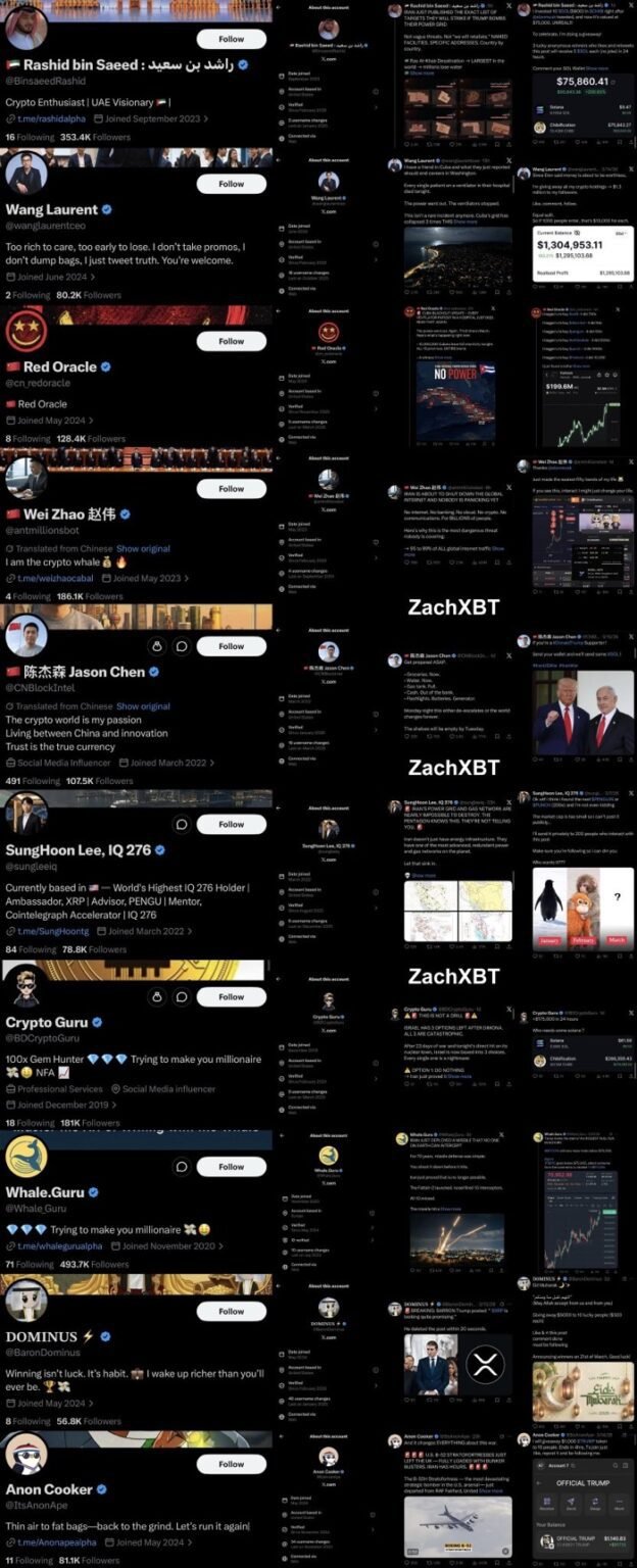 Soon after gaining traction, the network pivoted to promoting giveaways and low-cap meme tokens. All identified accounts reportedly blocked ZachXBT within hours of his March 23, 2026 thread. This ZachXBT crypto scam exposé highlights how engagement farming now weaponizes global tensions to extract quick profits from retail traders.