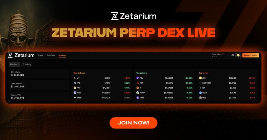 The Zetarium PERP DEX launch marks a more meaningful upgrade than earlier staking focused updates, shifting the project toward an active trading product with no KYC access and shared liquidity from Orderly Network. Early traction suggests stronger real usage compared with previous incentive led launches.